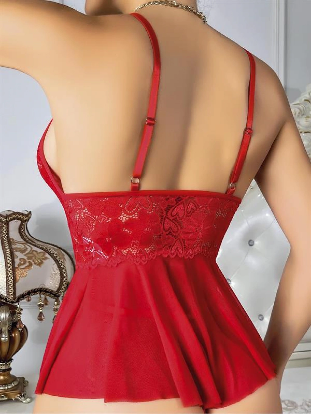 ❤️ Kırmızı Dantel İşlemeli Fantezi Body Gecelik – Aşkın ve Tutkunun Kırmızı Hali!