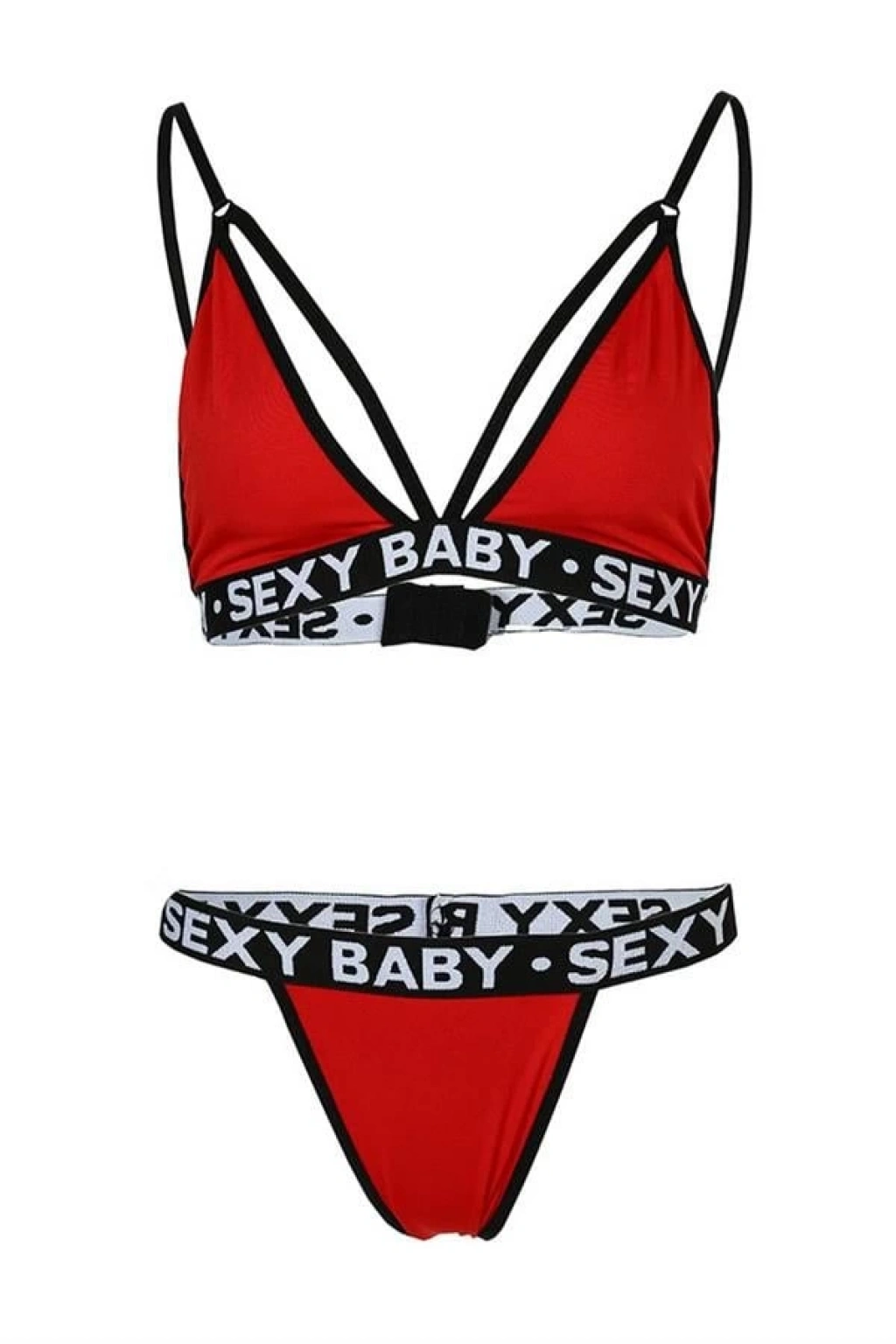 Morliva Kırmızı Yazılı Sütyen Külot Takım