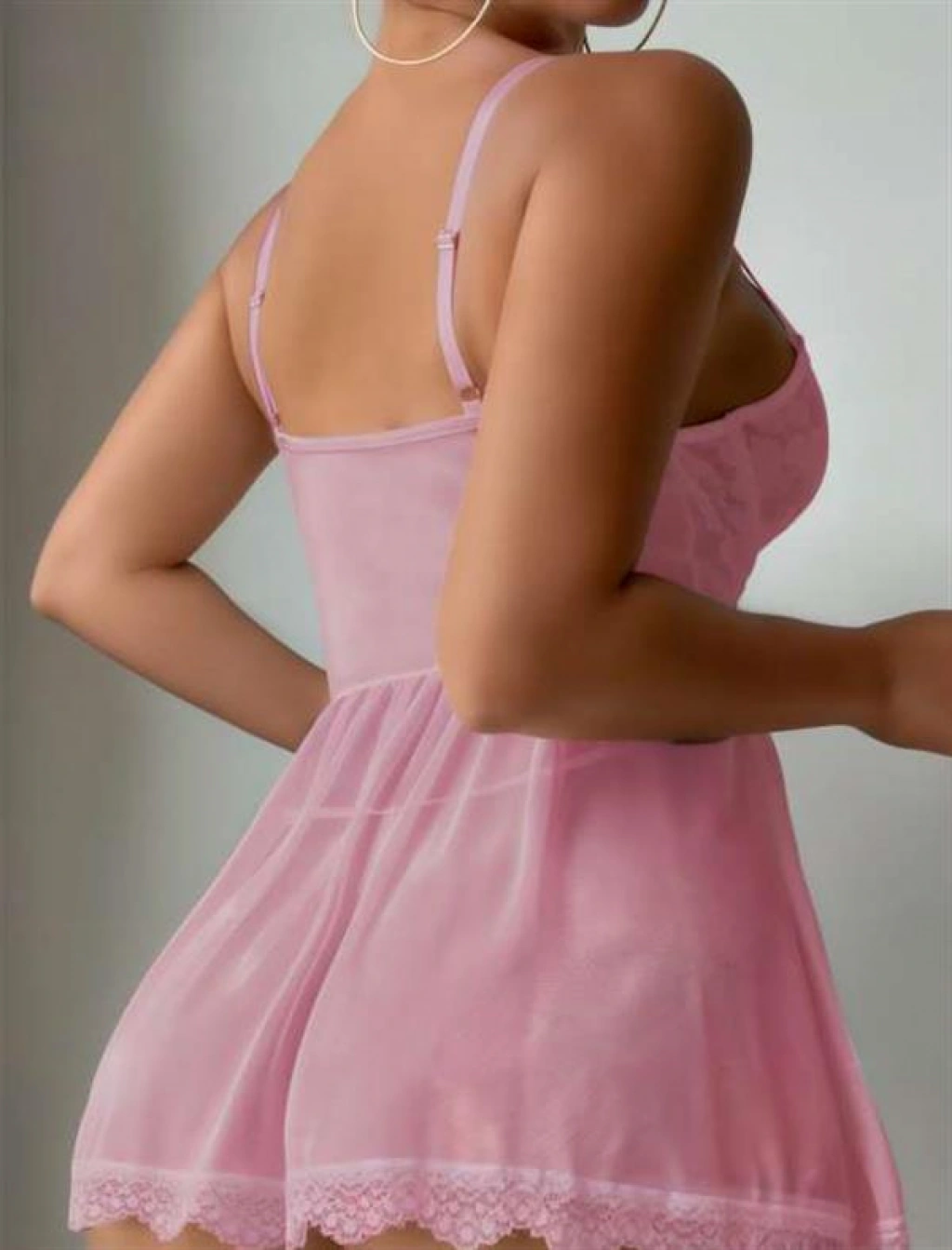 Romantizmin en zarif tonu pembe ile tasarlanan bu özel fantezi gecelik, masumiyet ve çekiciliği aynı anda hissettirmek için özenle hazırlanmıştır.