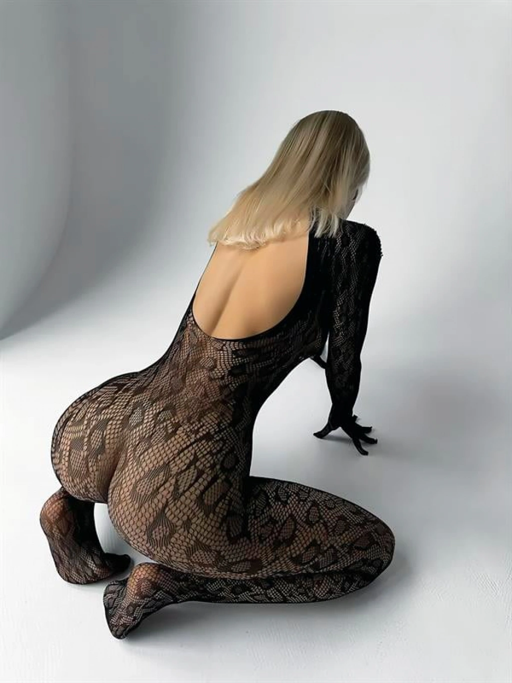 ? Özel Tasarım Siyah Sırt Dekolteli Fantezi Body Vücut Çorabı ?