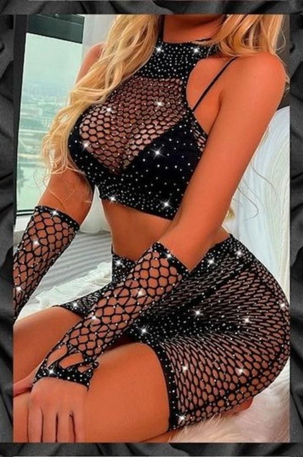 Morliva Özel Tasarım Siyah Taşlı Fantezi Vücut Çorabı
