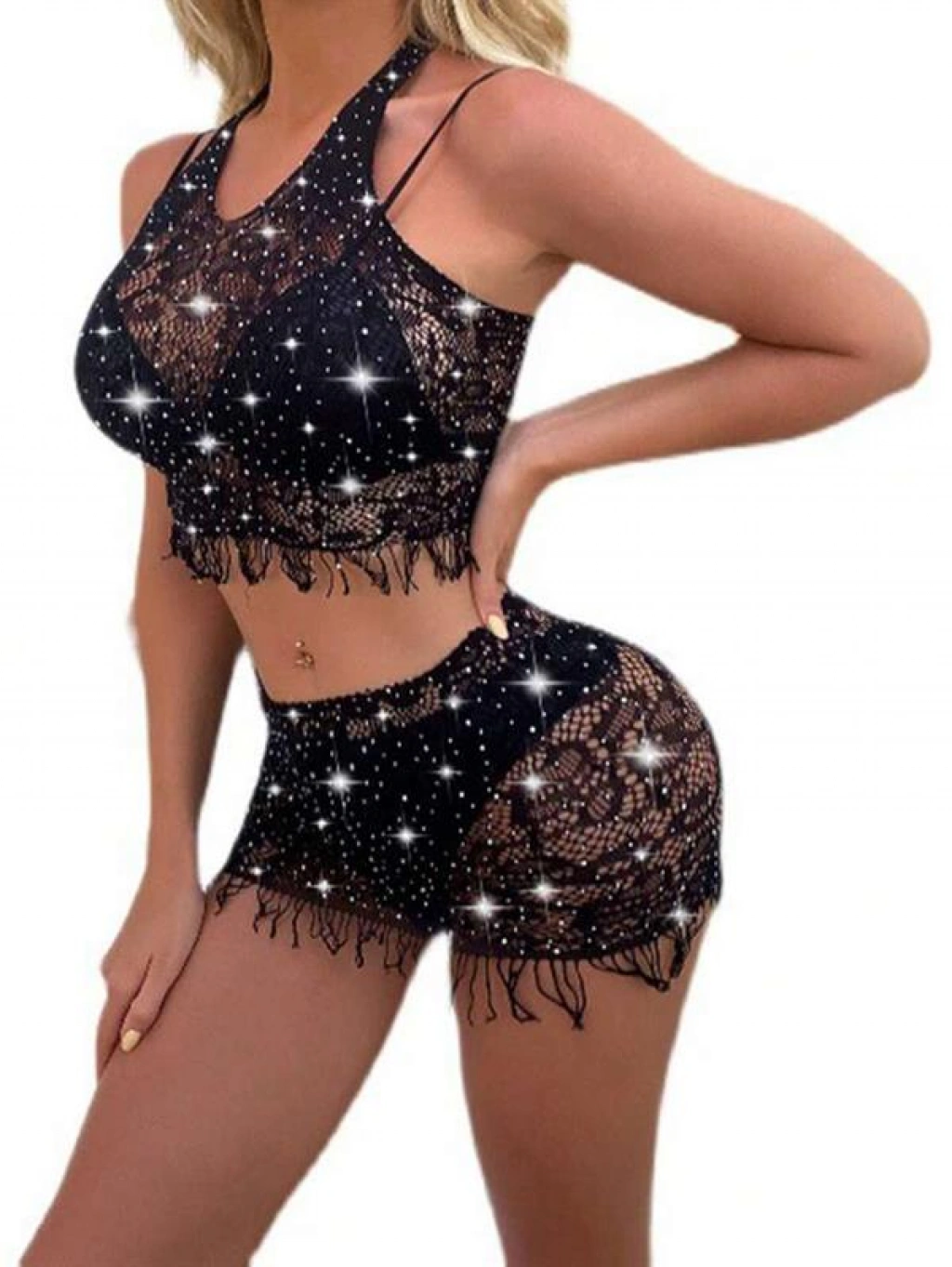 Morliva Özel Tasarım Siyah Taşlı Fantezi Vücut Çorabı