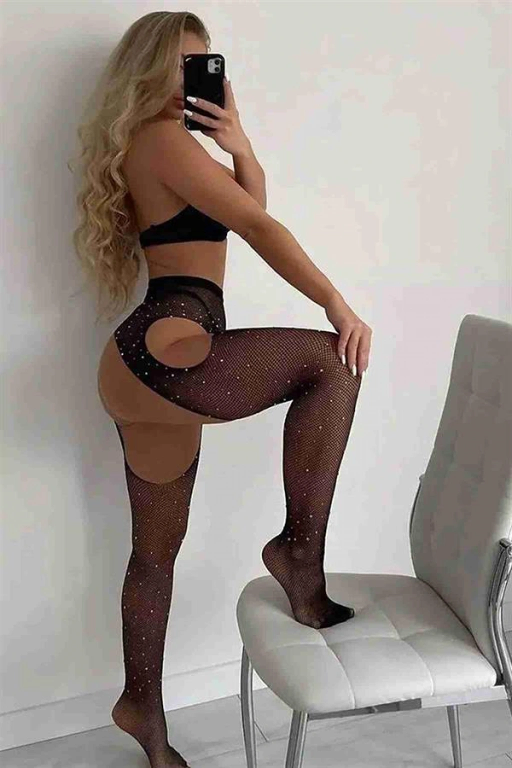Morliva Özel Tasarım Siyah Taşlı Fantezi Vücut Çorabı