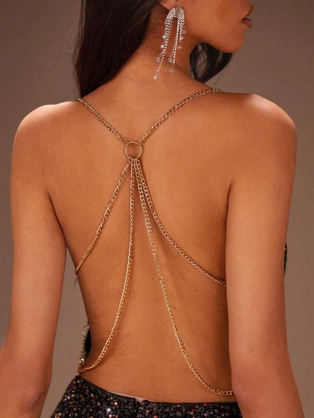 Morliva Özel Tasarım Siyah Payetli Zincir Detaylı Parlak Işıltılı Sırt Dekolteli Fantezi Mini Club Elbisesi