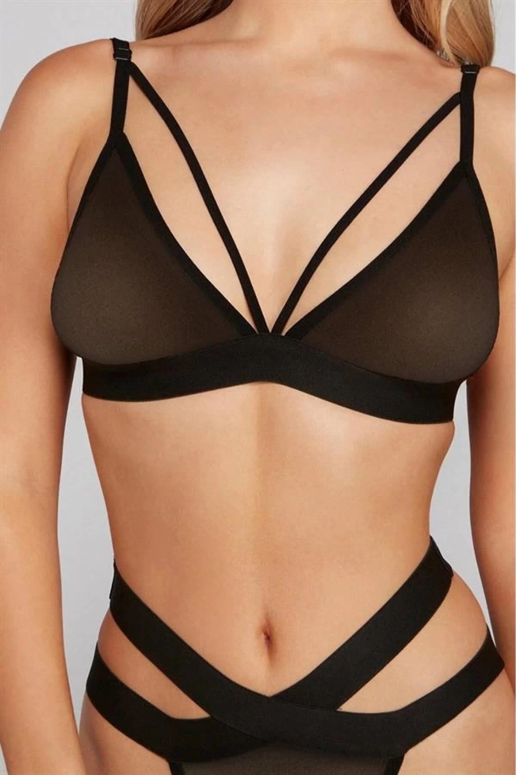 Morliva Deri Siyah Fileli Fantezi Sütyen Takımı