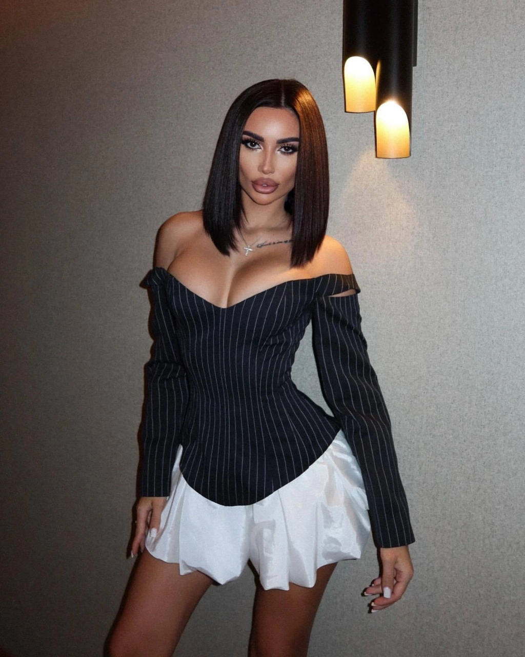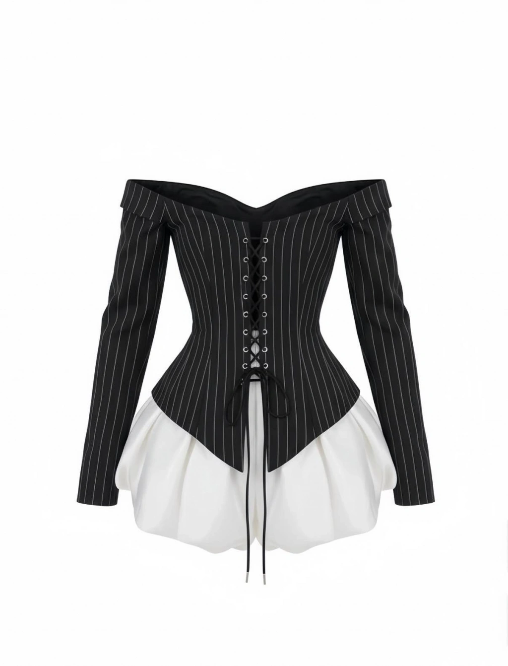 Diora Çizgili Çift Kumaşlı Arkası Delikli Detaylı Korse Büstiyer ve Jessica Kumaşlı Balon Etek Takımı