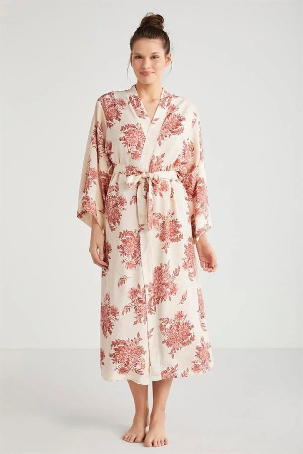 Catherine's %100 Viskon Çiçek Desen 2'li Sabahlık Gecelik Takımı