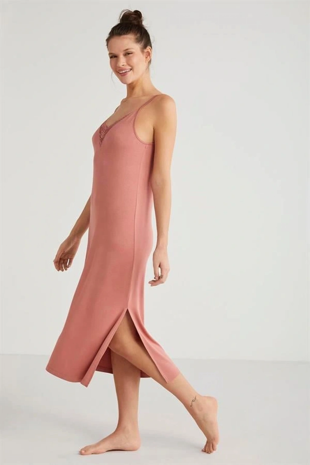 Özel Bölgesi Açık Dantelli Saks Babydoll Gecelik 15030