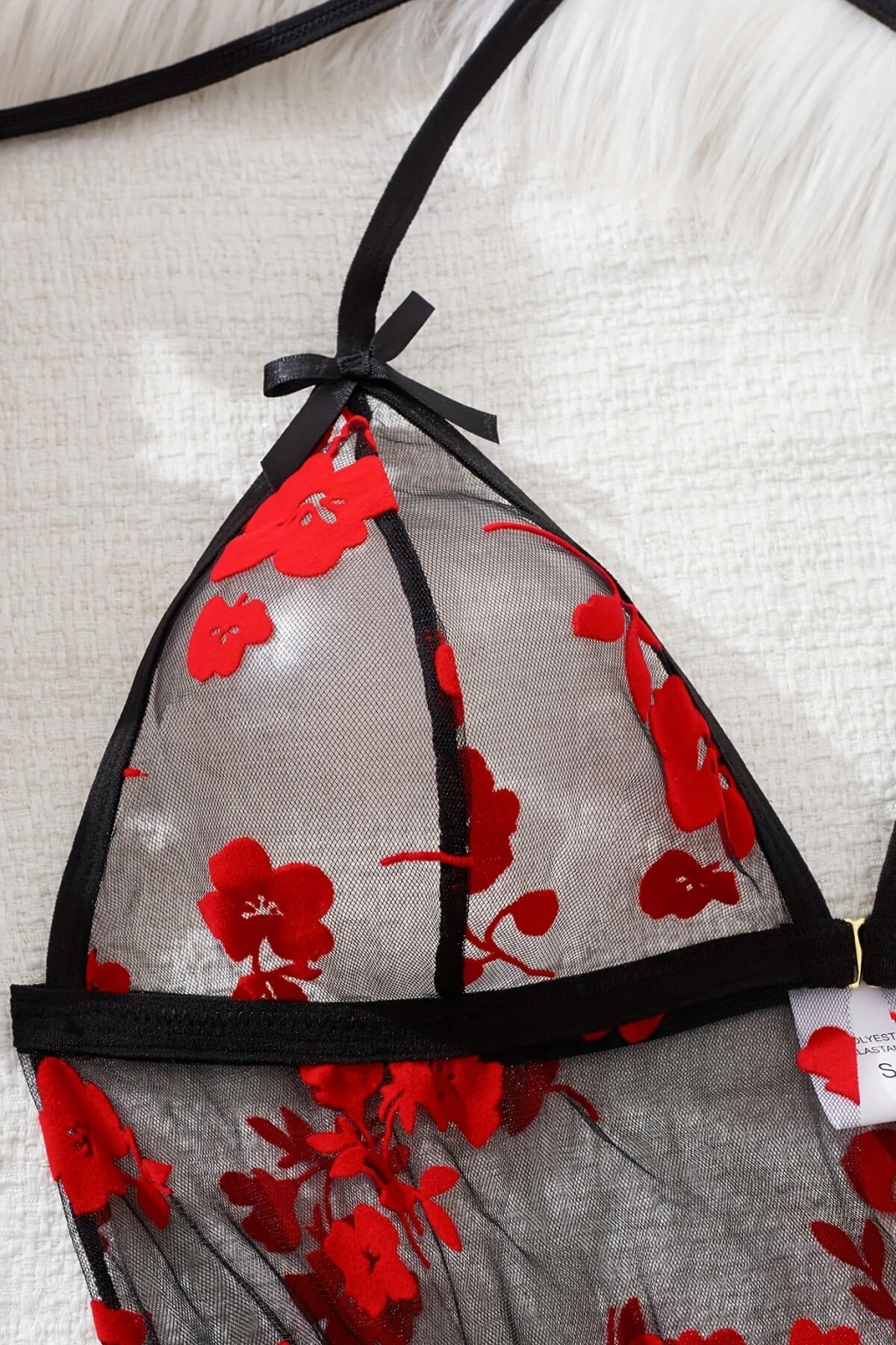 Çiçek Desenli Siyah Transparan Tül Gecelik TM1319