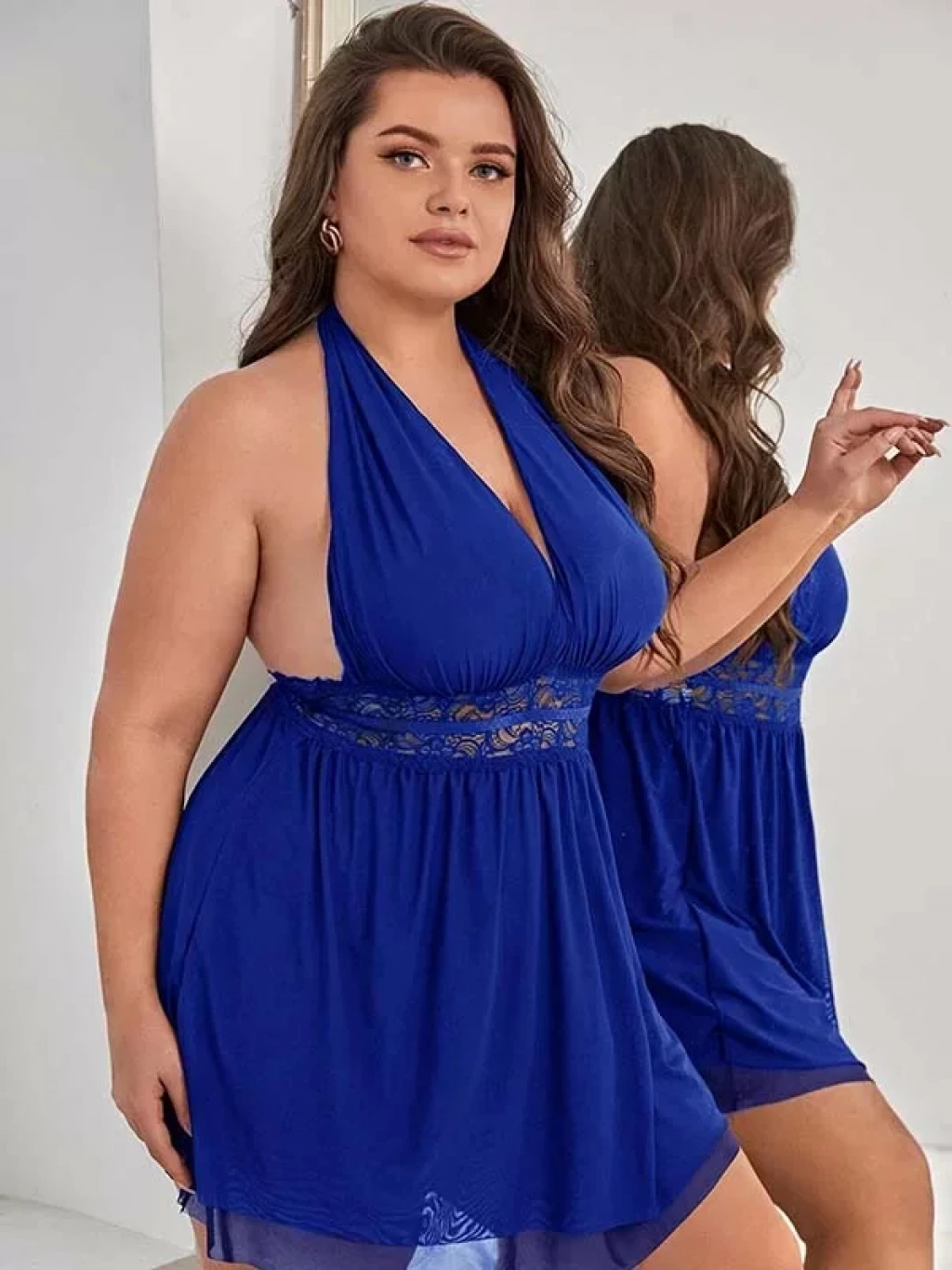 Bel Dekolteli Fantezi Tül Gecelik Büyük Beden