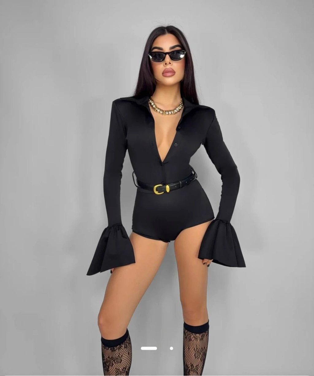 Kadın Siyah Fantezi Elbise Önden Zincir Detaylı 5088