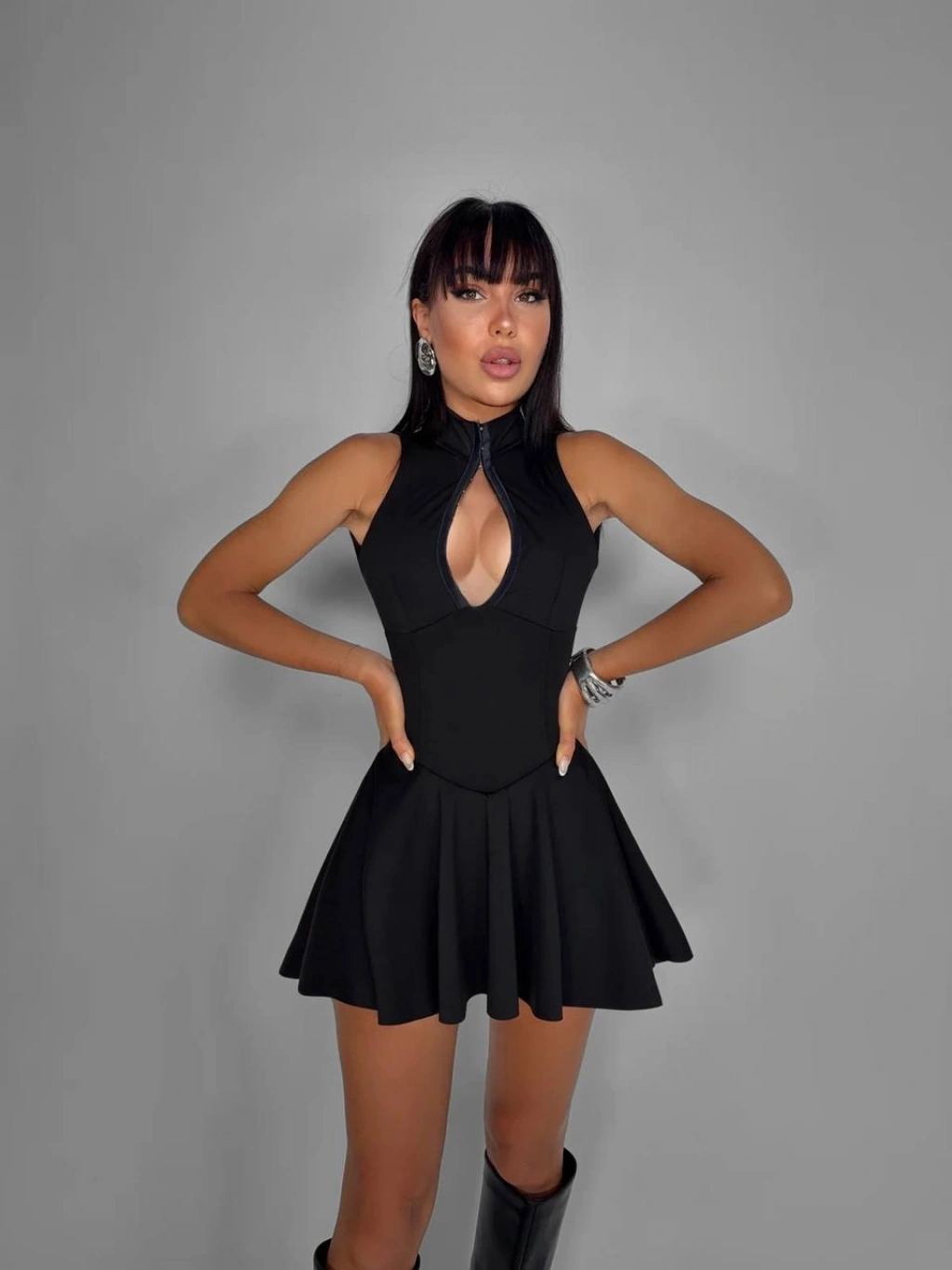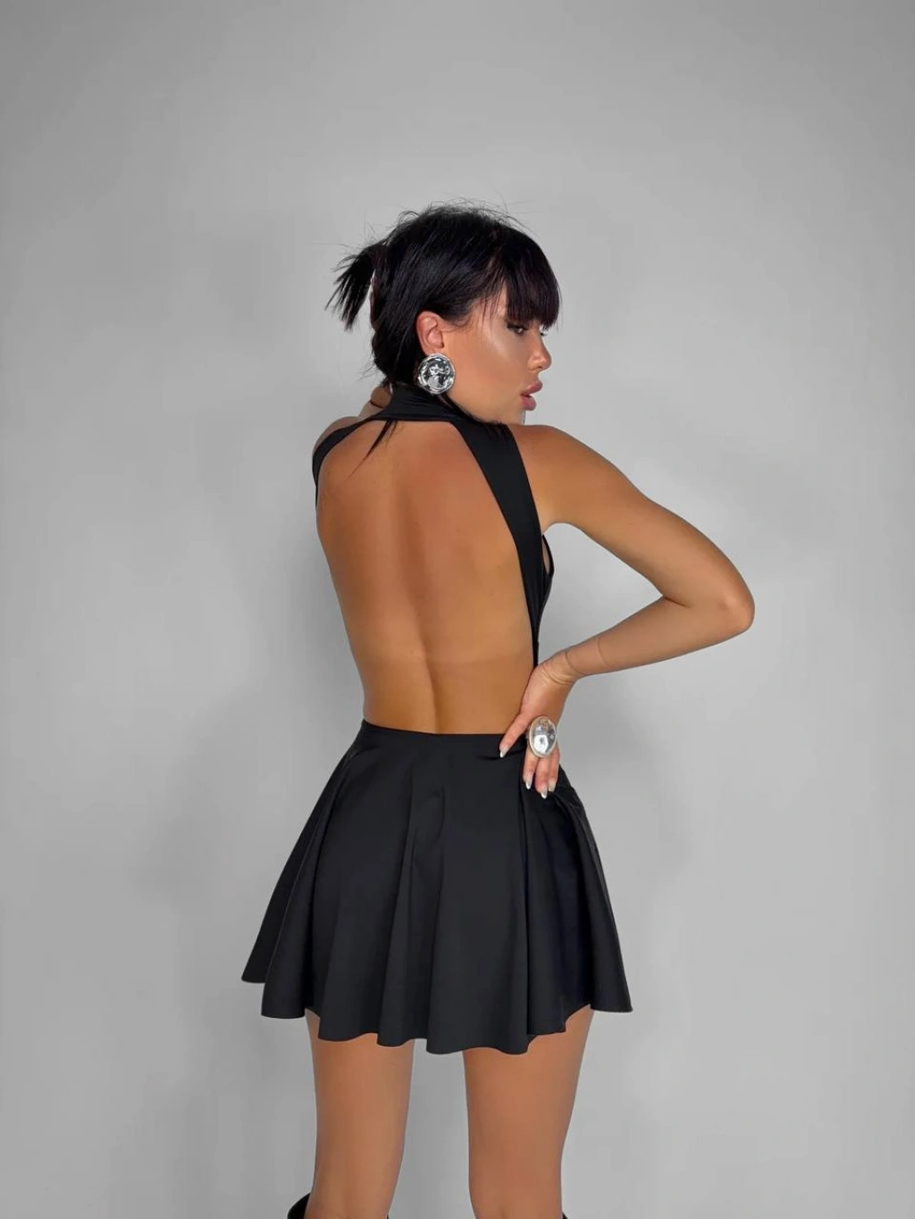 Şıklığı cesur detaylarla birleştiren Morliva Agraflı Sırt Dekolteli Mini Boy Kloş Elbise, özel davetlerden gece aktivitelerine kadar her anınıza dinamik bir hava katmak için tasarlandı. Kloş kesimiyle hareket özgürlüğü sunarken, agraflı sırt dekoltesiyle stilinize iddialı bir dokunuş ekler.