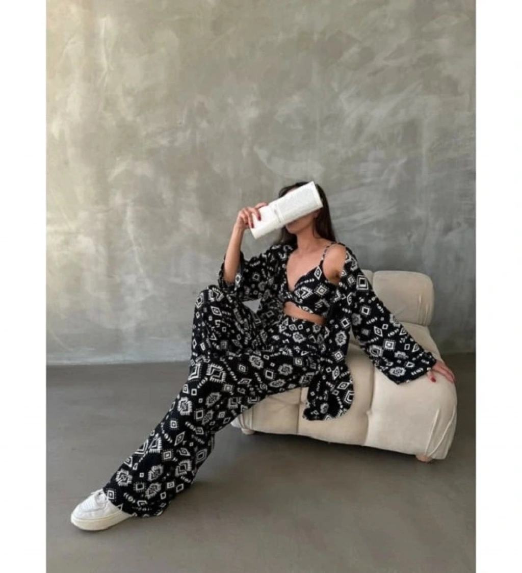 Bürümcük Kumaş 3 Lü Takım Siyah