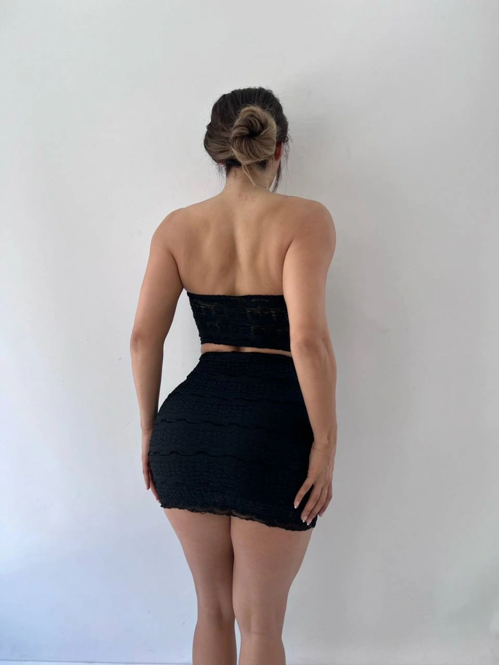 Morliva İthal dantel kumaş astarlı aksesuarlı ikili takım