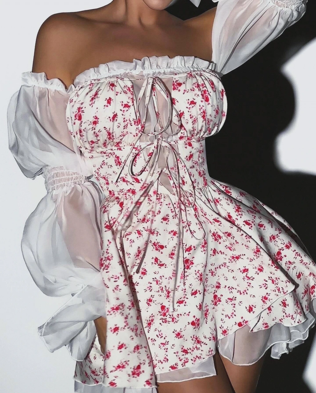 Morliva Organze Tül ve Mikro Kumaş Gipe ve Göz Detaylı Elbise