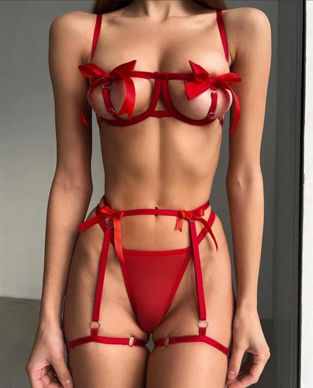 Tutkunun rengi kırmızı, zarif kurdela detayları ve jartiyer ile birleşiyor! Özel Tasarım Kırmızı Kurdela Detaylı Jartiyerli Fantezi Sütyen String Takımı, romantik ve iddialı bir görünüm yaratmak için tasarlandı. Sütyen, string ve uyumlu jartiyer parçalarıyla feminen hatları ön plana çıkarır ve özel gecelerinizde büyüleyici bir stil sunar.