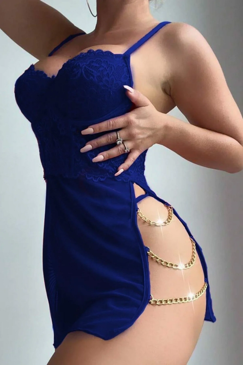 Göğüs Kısmı İşlemeli Fantazi Mini Tül Gecelik